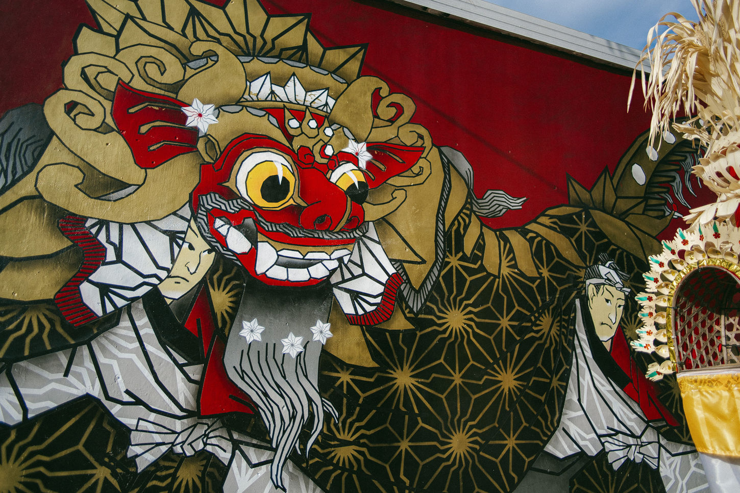 For the mural, BAKIBAKI drew inspiration from “Chinzu-Shishimai” by Utagawa Toyokuni, a renowned ukiyo-e artist of the Edo period. The work merges the Japanese lion dance (Shishimai) with the Balinese Barong dance, two powerful cultural symbols of protection and community spirit. By placing these traditions side by side, he created a dialogue between Japan and Bali, underscoring their shared emphasis on ritual, storytelling, and collective identity.