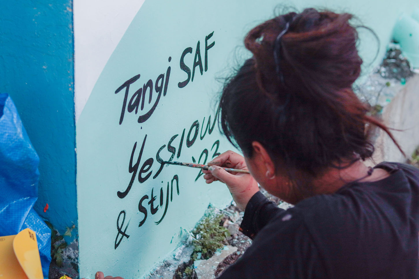 After graduation, Yessiow and her partner Stijn traveled the world, and during an extended stay in India caused by the COVID-19 pandemic, she immersed herself in street painting, including her first four-story mural. This experience solidified her passion for large-scale public art and deepened her connection to communities through visual storytelling.